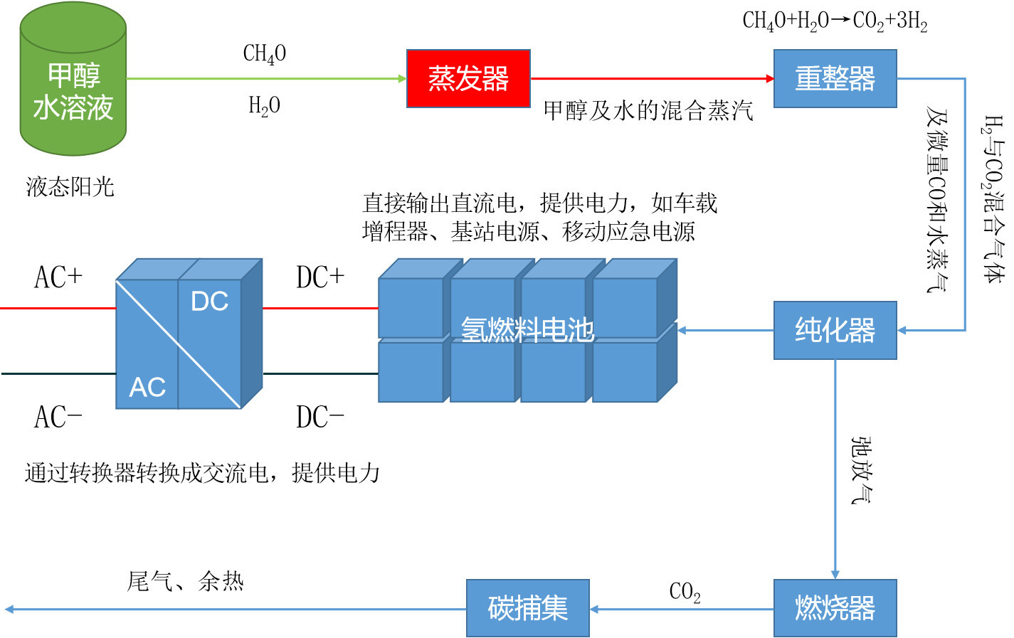 當(dāng)前能源結(jié)構(gòu)下,甲醇水制氫+氫燃料電池排放最低,產(chǎn)物僅僅是水和二氧化碳,僅為純電動(dòng)汽車技術(shù)路徑下的1/2。