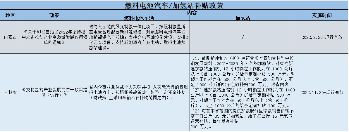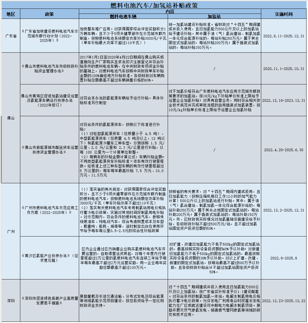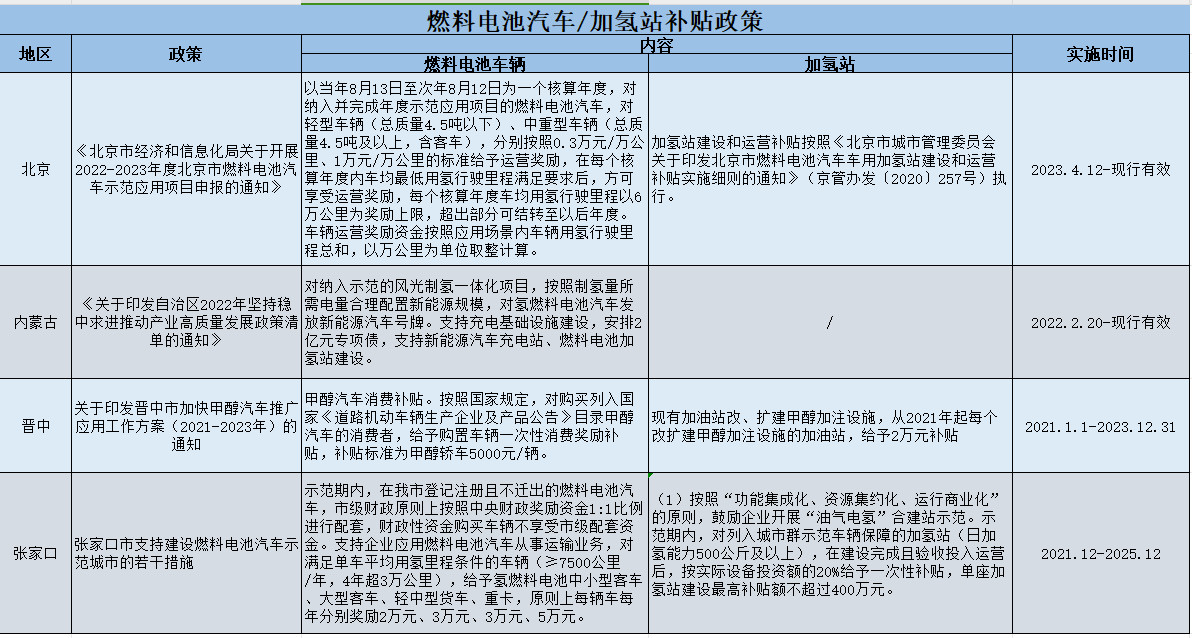 隨著氫燃料電池產(chǎn)業(yè)鏈的不斷完善,疊加各省市政策的引導(dǎo),我國的氫能及燃料電池產(chǎn)業(yè)發(fā)展十分迅速。以下是我司整理匯總的各省市現(xiàn)行有效的燃料電池車/加氫站補貼政策: